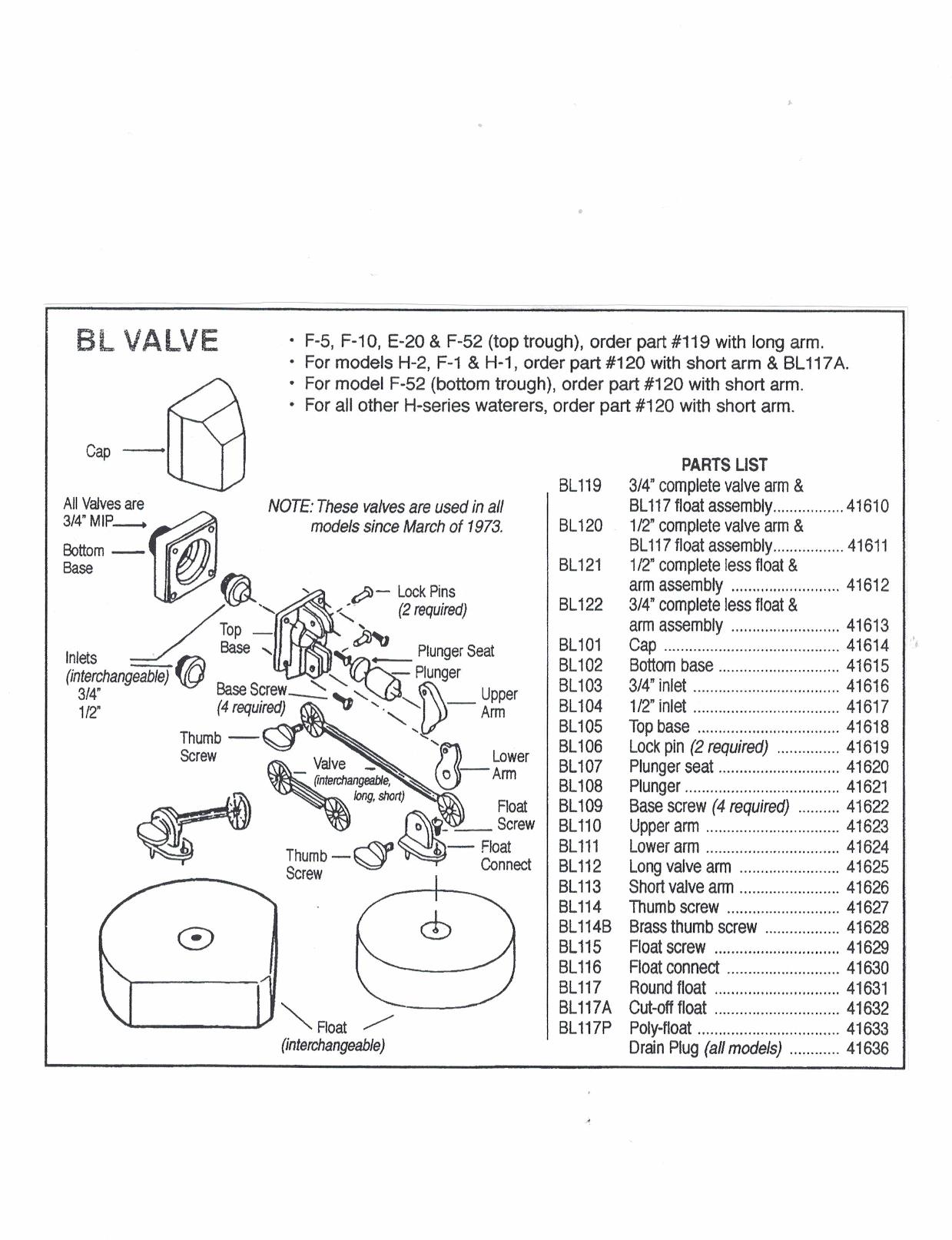 Show All Complete Valve, Float Arm and Float Combinations